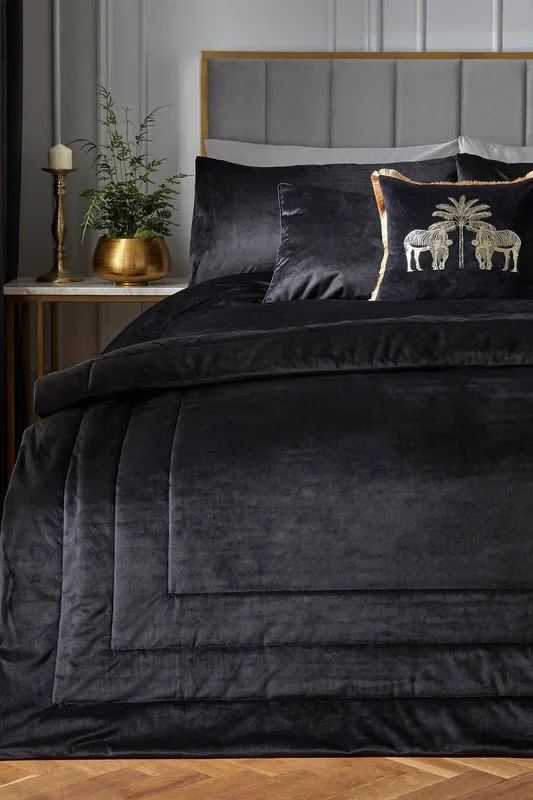 Laurence Llewelyn-Bowen Unisex 'Chic' Luxury Soft Velvet Frame Stitched Warm & Cosy Bedspread in Black Black One Size female
