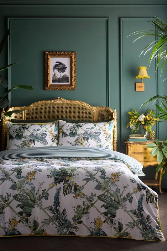 Laurence Llewelyn-Bowen Unisex 'Cotswald Fantasia' Floral Print 200 Thread Count Cotton Duvet Cover Set in Green Size: Double Green Double female