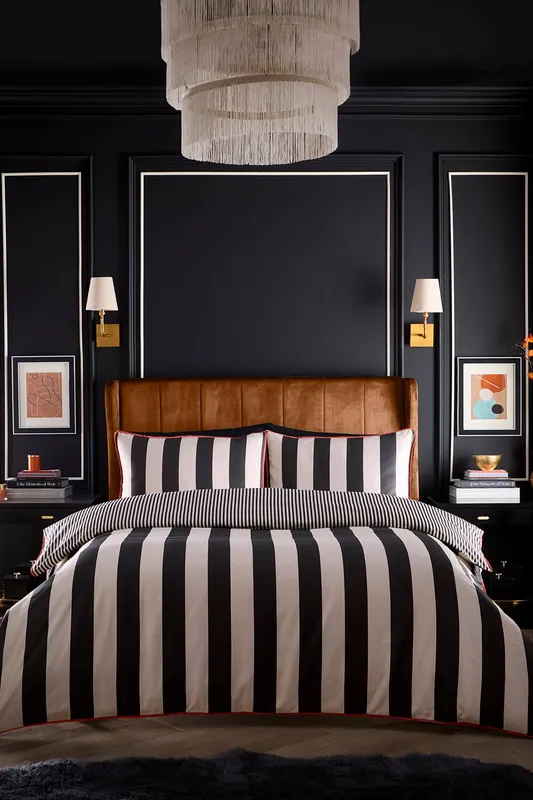 Laurence Llewelyn-Bowen Unisex 'Festivo Circus Stripe' Striped Print 100% Cotton Duvet Cover Set in Black Size: King Black King female
