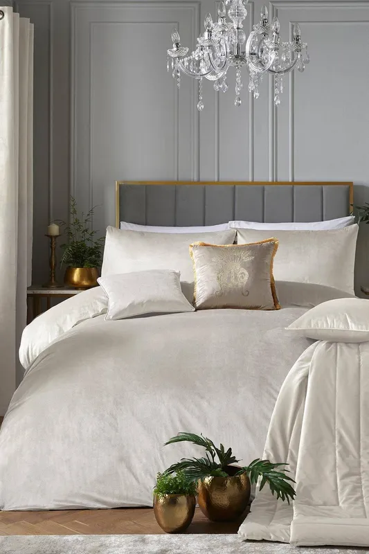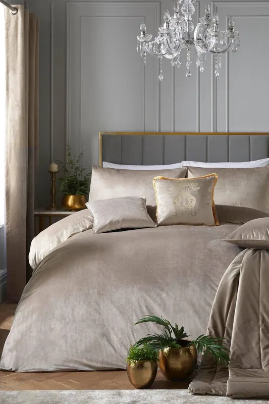 Laurence Llewelyn-Bowen Unisex 'Montrose' Luxury Velvet Duvet Cover Set in Natural Size: King Natural King female