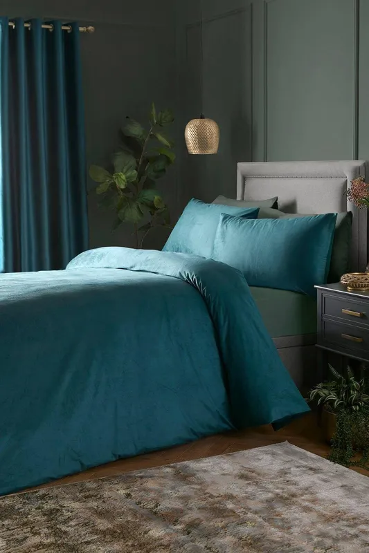 Laurence Llewelyn-Bowen 'Montrose' Luxury Velvet Duvet Cover Set in Teal Size: Super King - Teal - Size: Super King