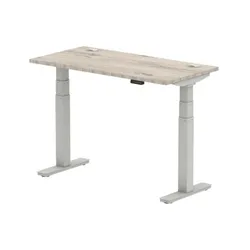 Air 1200x600mm Height Adjustable Desk Grey Oak Cable Ports Silver Leg