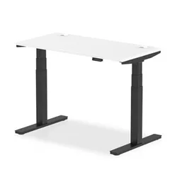 Air 1200x600mm Height Adjustable Desk White Top Cable Ports Black Leg