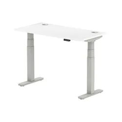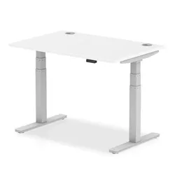 Air 1200x600mm Height Adjustable Desk White Top Cable Ports Silver Leg
