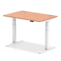 Air 1200x600mm Height Adjustable Desk Beech Top Cable Ports White Leg
