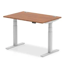 Air 1200x600mm Height Adjustable Desk Walnut Cable Ports Silver Leg