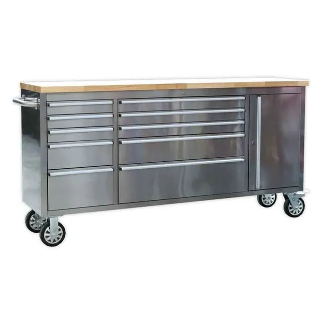 Sealey AP5510SS Mobile 10 Drawer Stainless Steel Cabinet with Backboard
