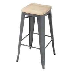 Bolero Bistro High Stools with Wooden Seat Pad Gun Metal (4 pack)