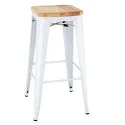 Bolero Bistro High Stools with Wooden Seatpad White (4 pack)
