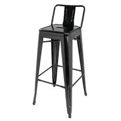 Bolero Bistro Steel High Stool with Backrest Black (4 pack)