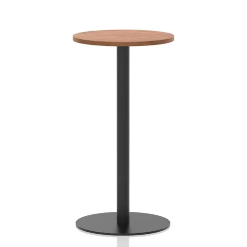 Italia 600mm Poseur Round Table Walnut Top 720mm High Black Leg