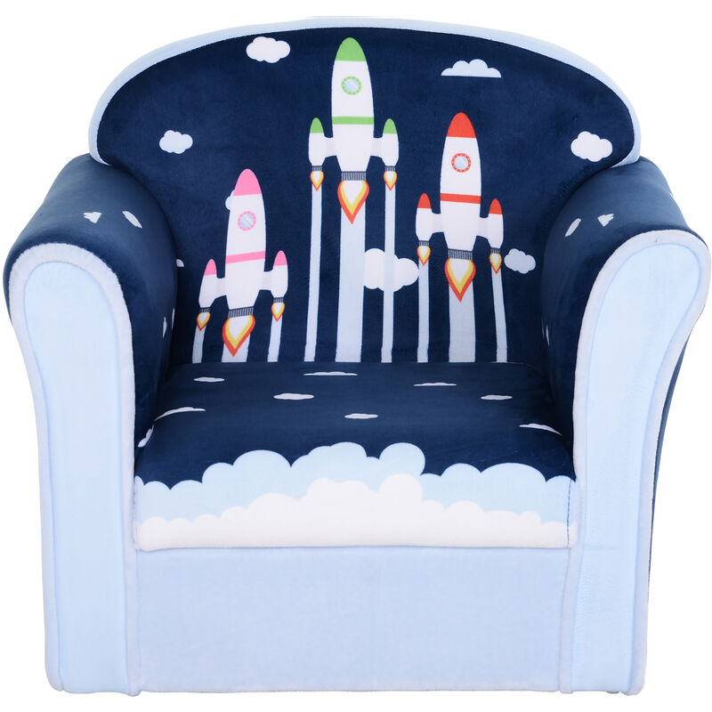Homcom Space Rocket Children Kids Armchair Sofa Fun omfortable Wood Frame 3-6 Yrs Blue Blue