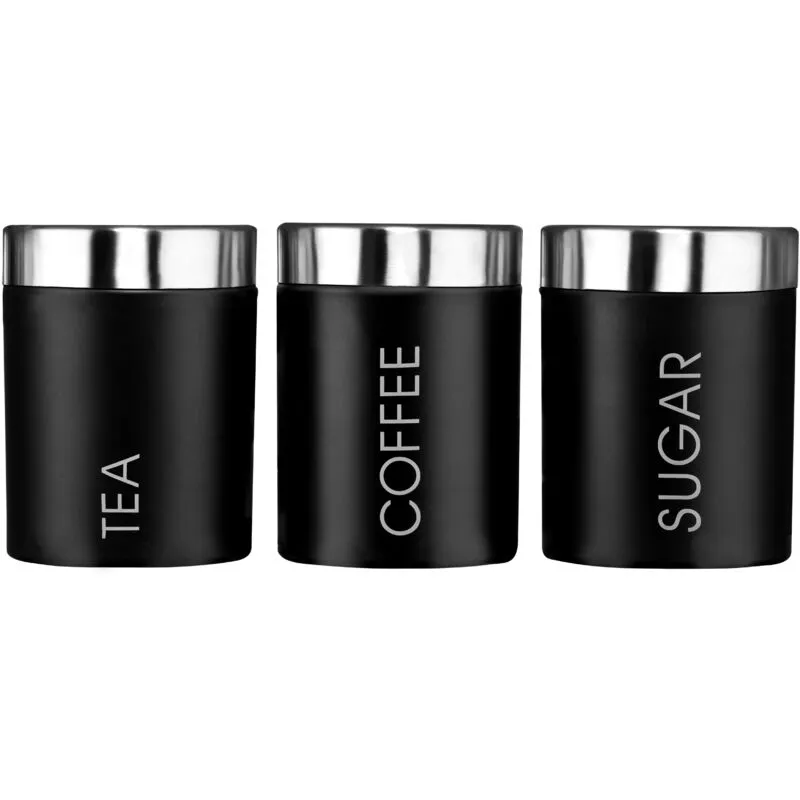 Premier Housewares Pun & Games Set of 3 Tea Coffee Sugar Canisters in Black Black