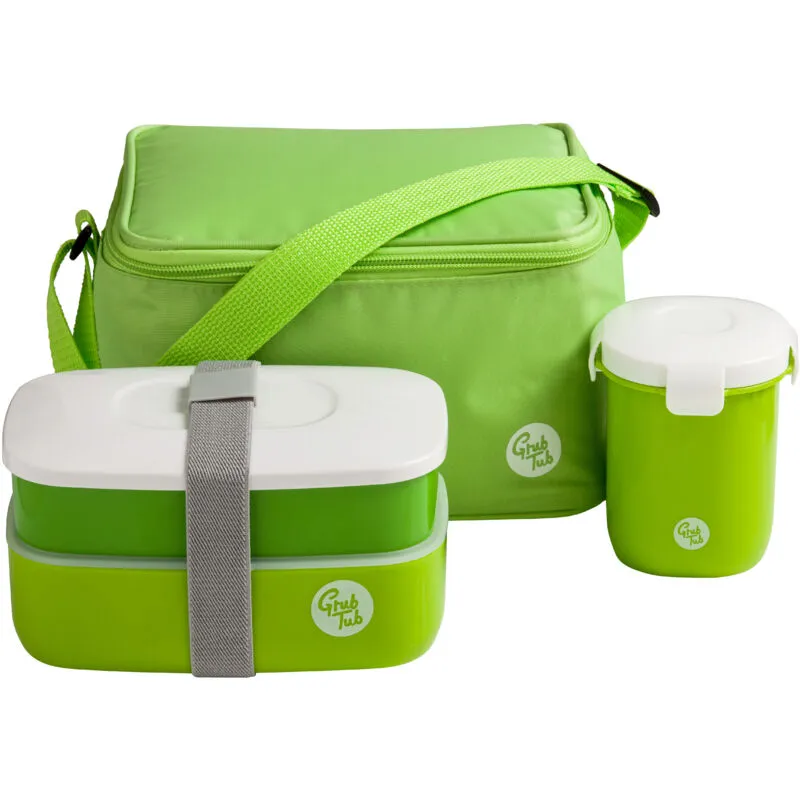Premier Housewares - Interiors by Premier Organized Green 3PC Lunch Box, Leak Proof Tiffin Box, Comfortable Packed Lunch Box, Portable Lunch Container