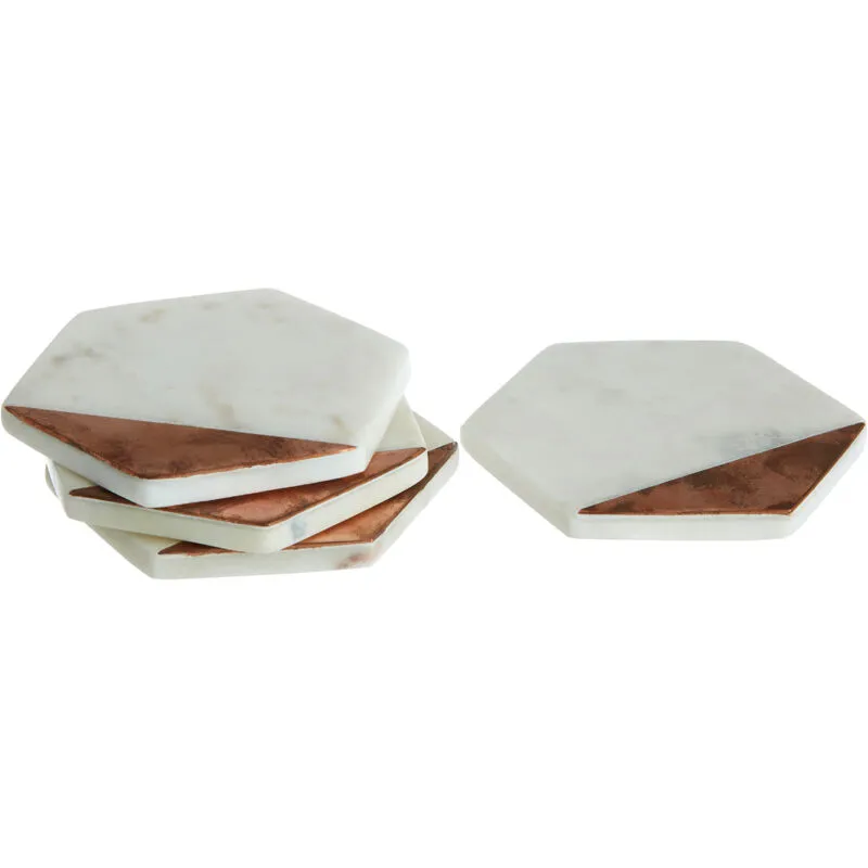 Premier Housewares - Set of 4 White Marble / Copper Inlay Coasters