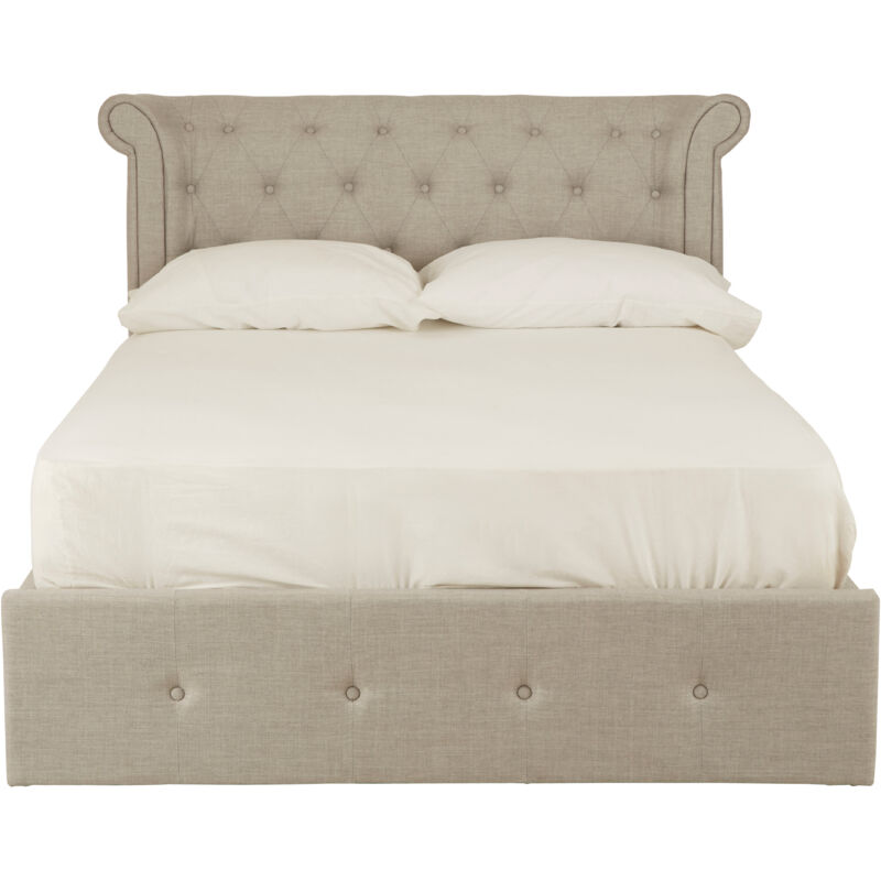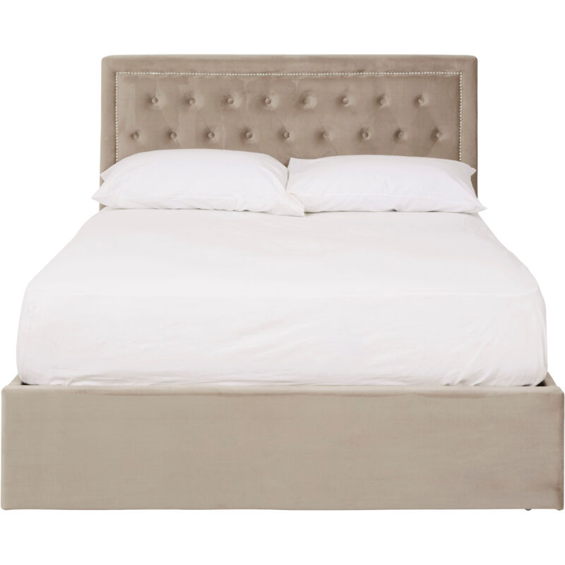 Premier Housewares - Interiors By Premier Classic Mink Velvet Double Ottoman Bed, Elegant Button Tufted Bedroom Bed, Ottoman Stud Detailed Bed