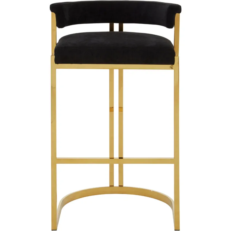 Premier Housewares - Interiors by Premier Black Bar Chair Stool with Back, Kitchen Stool for Bar, Gold Frame Breakfast Stool with Velvet Upholstery