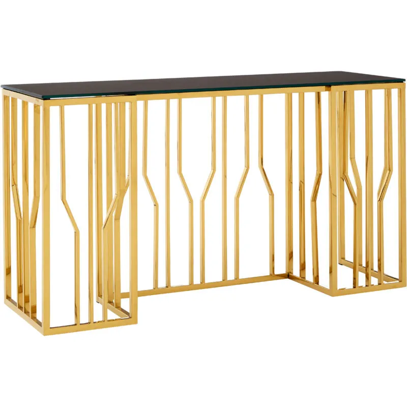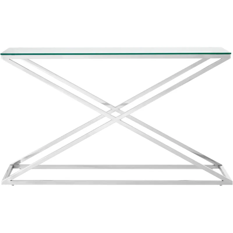 Premier Housewares - Interiors by Premier Glass Top Criss Cross Console Table, Stainless Steel and Glass Console Table, Contemporary Hallway Table