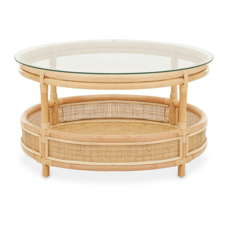 Premier Housewares - Interiors by Premier Elegant Rattan Coffee Table With Glass Top, Round Cane Furniture, Sturdy Outdoor Table, Stable Coffee Table