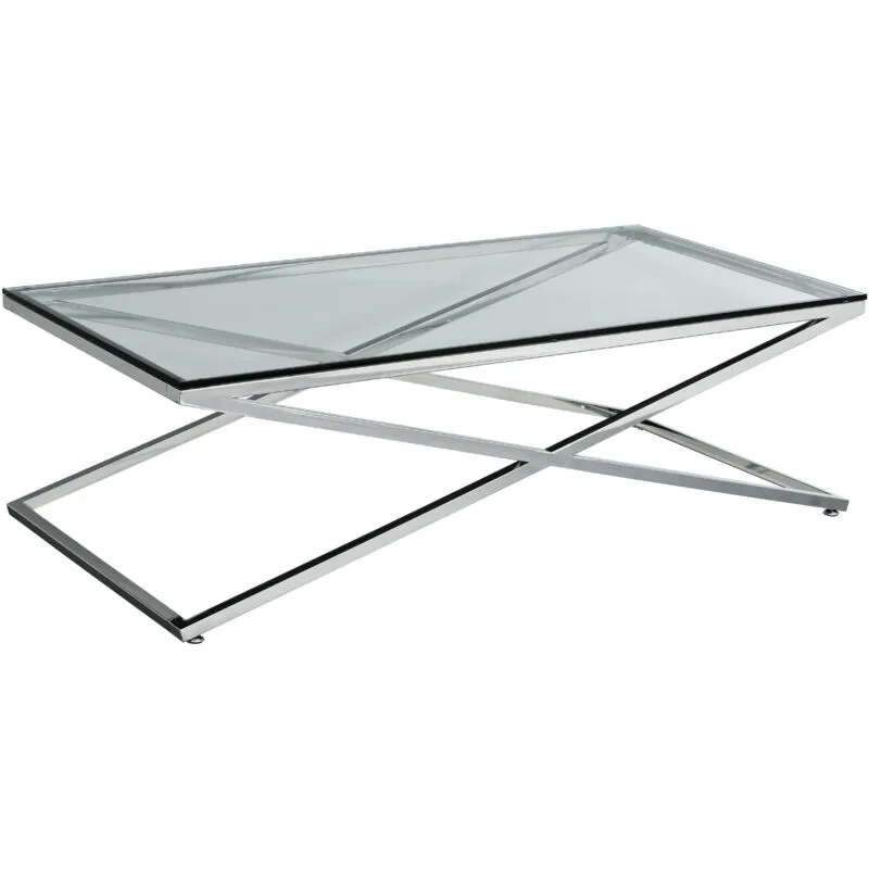 Premier Housewares Interiors by Premier Glass Coffee Table with Metal Criss Cross Design, Glass Top Coffee Table, Silver Coffee Table For Living Room