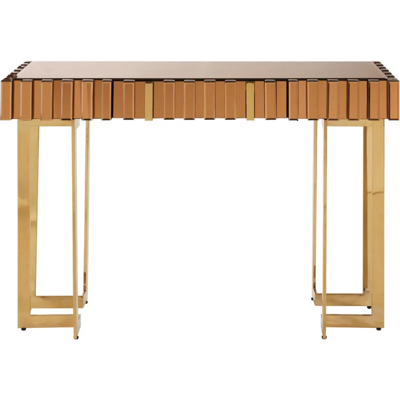 Premier Housewares - Interiors by Premier Reflective Gold Console Table with Drawer, Modern Mirrored Console Table, Gold Metal and Glass Console Table