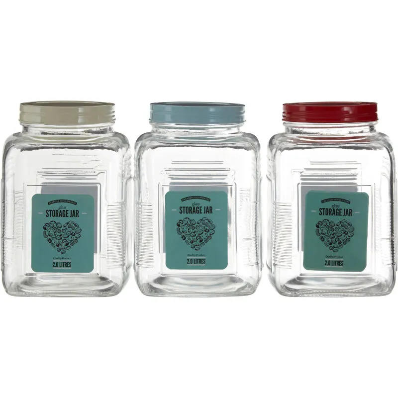 Premier Housewares - Assorted Square Clear Glass Large Storage Jar