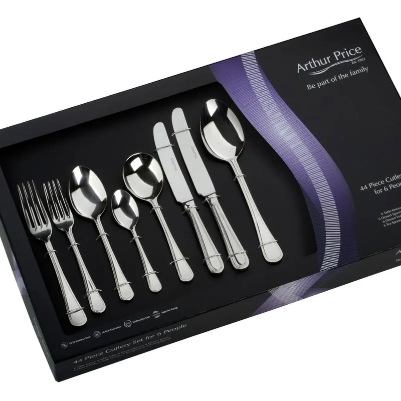 Arthur Price 'Bead' Stainless Steel 44 Piece 6 Person Gift Boxed Cutlery Set in Silver - Silver - Size: 6 Person