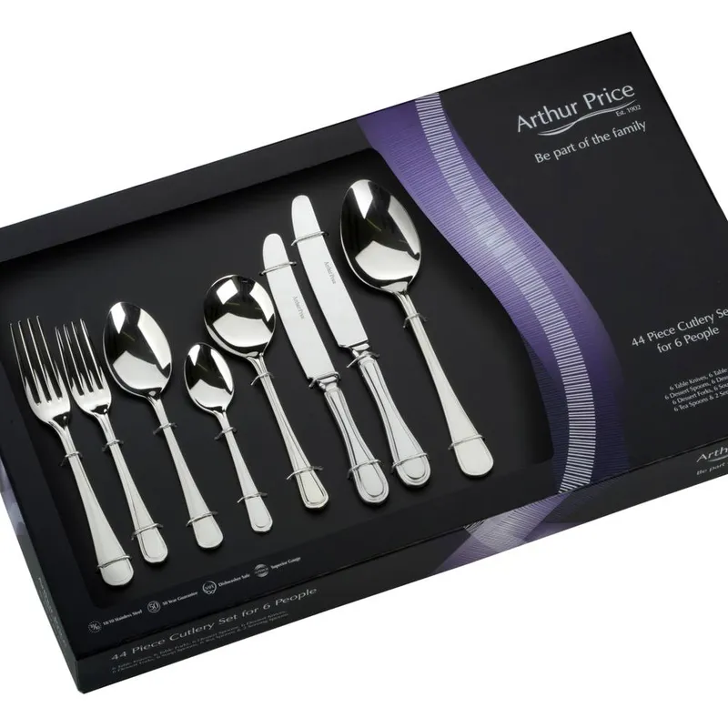 Arthur Price 'Avalon' Stainless Steel 44 Piece 6 Person Gift Boxed Cutlery Set in Silver Silver