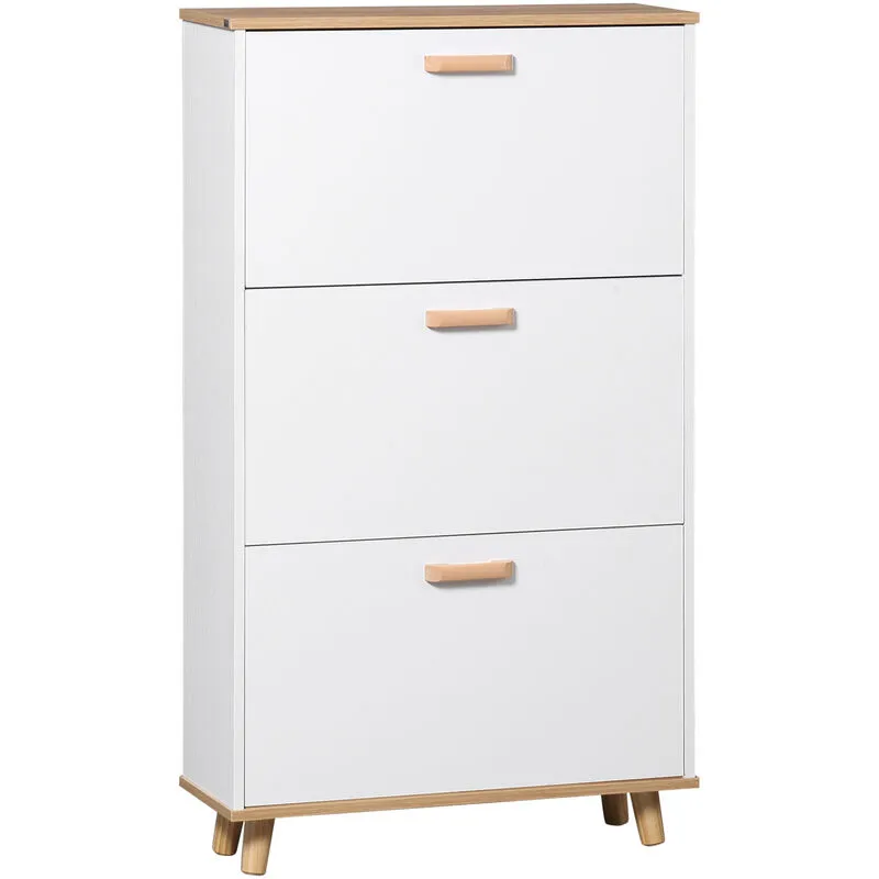 Homcom - Slim Shoe Storage Cabinet with 3 Drawers and Adjustable Shelves for Hallway White