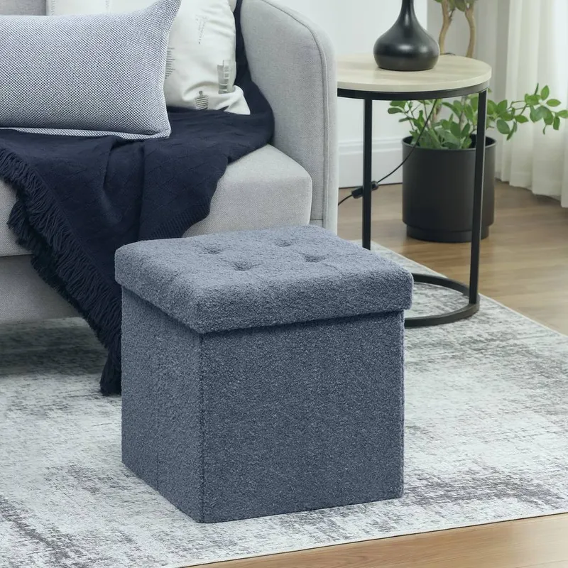 HOMCOM Foldable Sherpa Fleece Storage Ottoman, 38 x 38 x 38 cm in Blue - Blue - Size: One Size