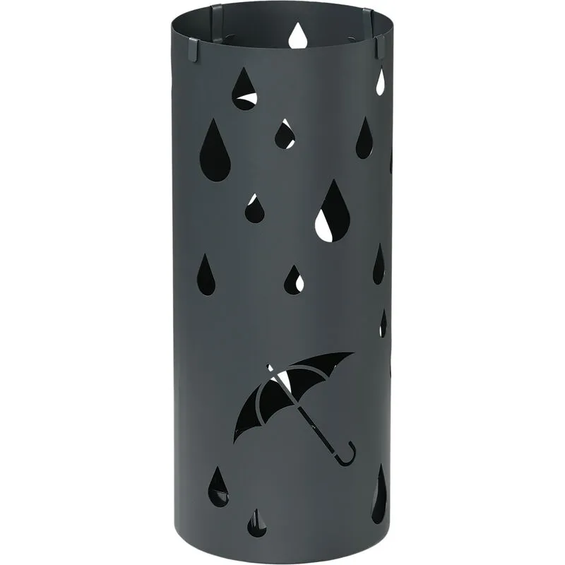 HOMCOM Metal Umbrella Stand, Hollowed Umbrella Basket with 4 Hooks and Drip Tray