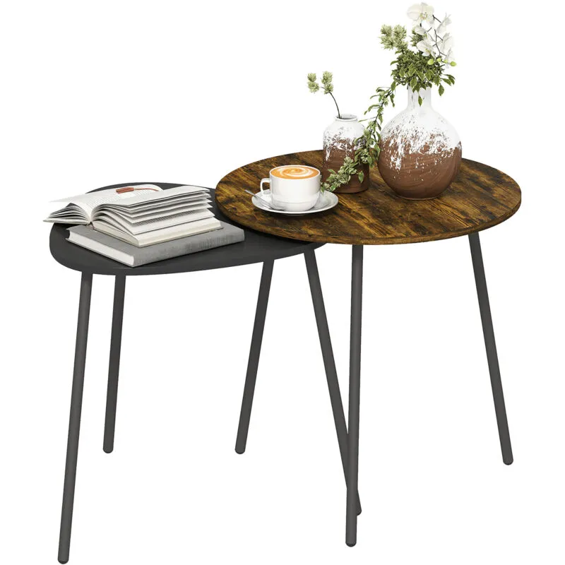 HOMCOM Set of 2 Nesting Side Table with Metal Frame, Rustic Brown