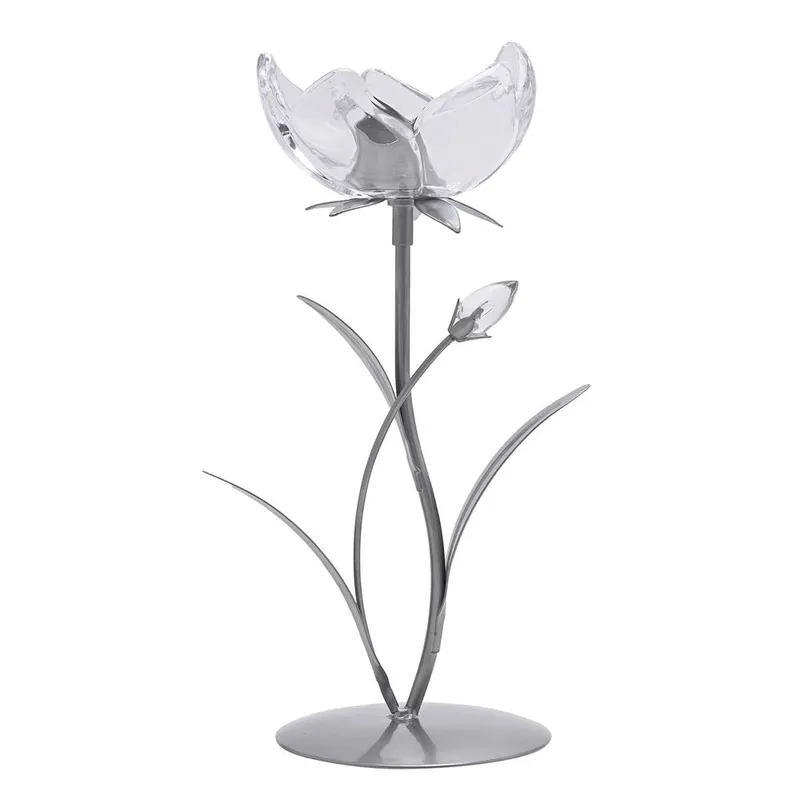 Hestia Pink Glass Rose Single Candle Holder With 2 Tone Black & Silver Base - Pink - Size: One Size