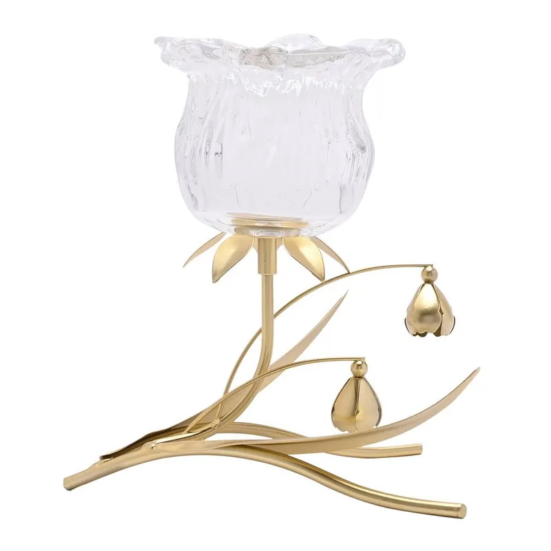 Hestia Single Stem Clear Glass Flower Candle Holder With Gold Stem - Gold - Size: One Size