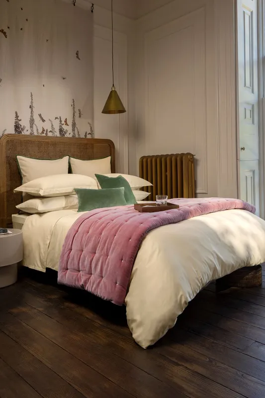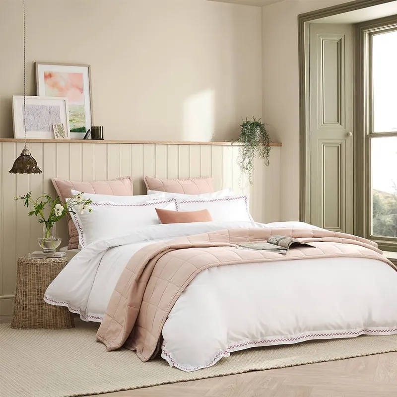 CHRISTY 'Wave Edge' Embroidered Cotton Percale Duvet Cover Sets in Pink Size: King - Pink - Size: King