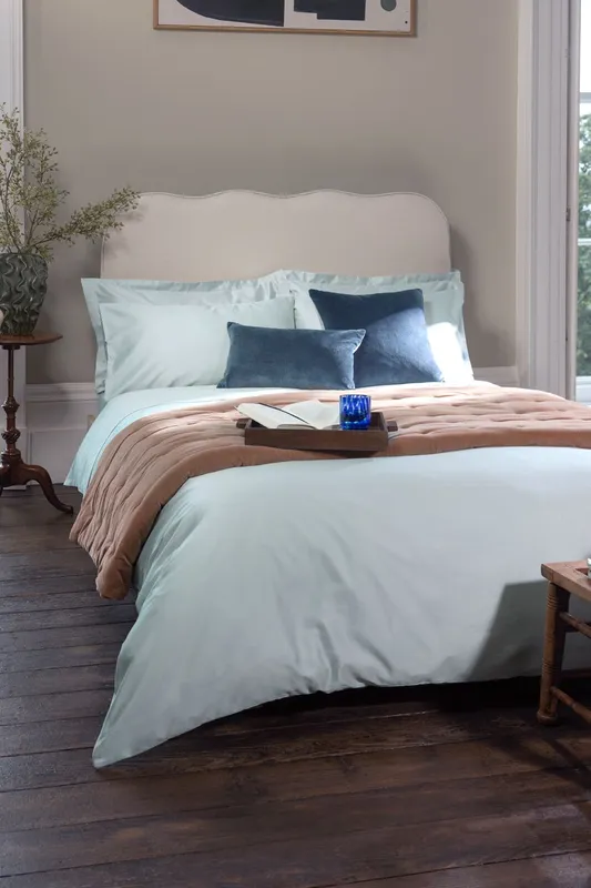 CHRISTY 'Wave Edge' Embroidered Cotton Percale Duvet Cover Sets in Green Size: King - Green - Size: King