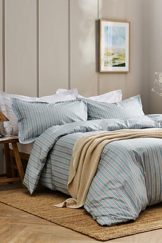 CHRISTY 'Calder Stripe' Heritage Inspired Cotton Percale Duvet Cover Set in Blue Size: King - Blue - Size: King