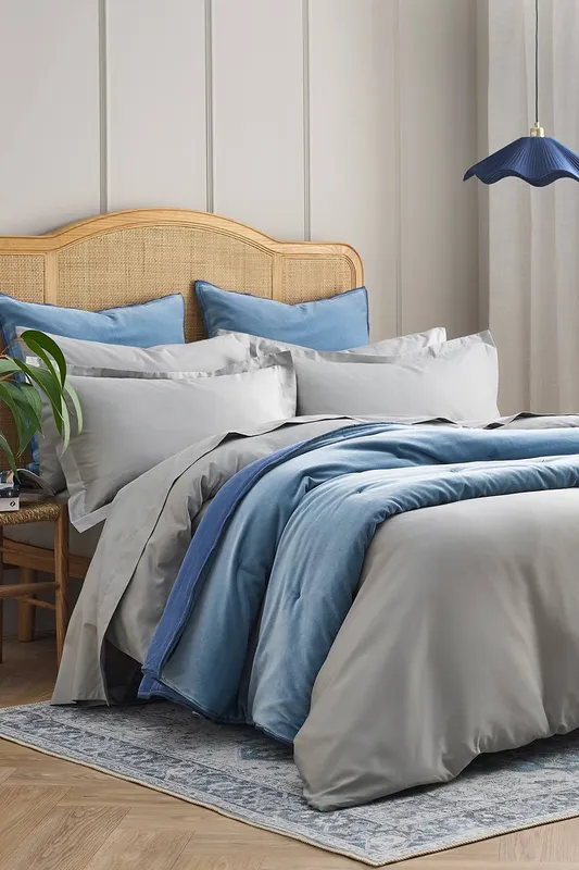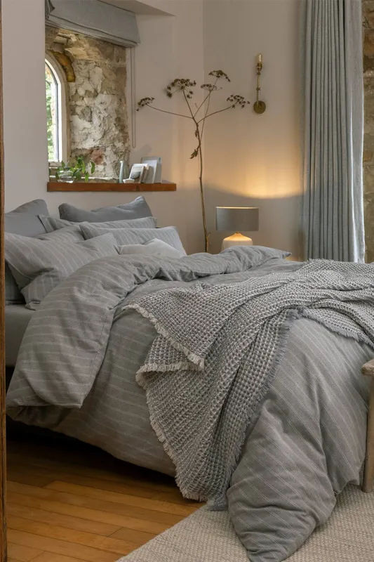 CHRISTY Scallop Edge Cotton Sateen Duvet Sets in Grey Size: Single Grey Single