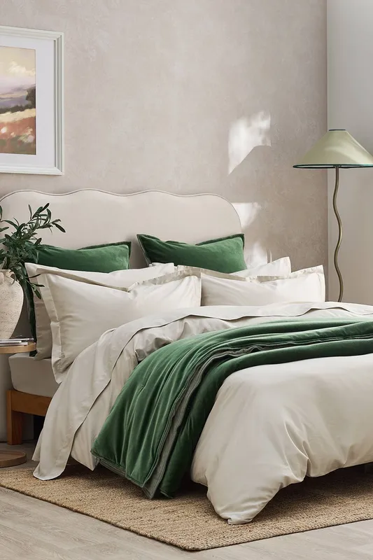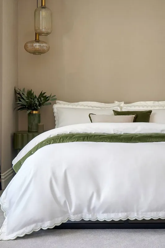 CHRISTY Unisex Scallop Edge Cotton Sateen Duvet Sets in Green Size: Single Green Single female