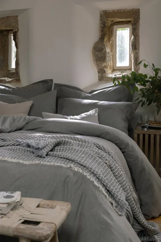 CHRISTY Unisex Flannel Marl Super Soft Brushed Cotton Duvet Sets in Grey Size: Double Grey Double female
