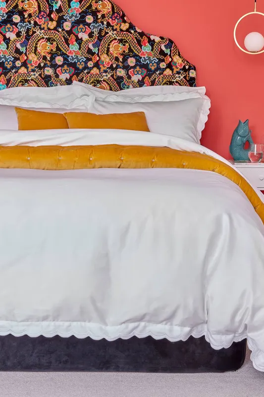 CHRISTY Unisex Scallop Edge Cotton Sateen Duvet Sets in White Size: Single White Single female