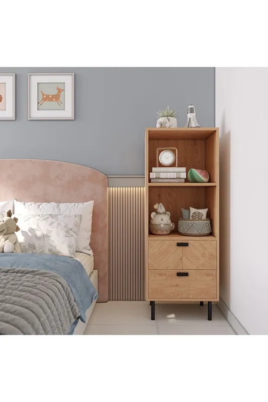 Seconique Leon 2 Drawer 2 Shelf Cabinet in Natural Natural