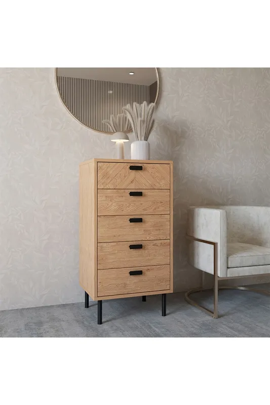 Seconique Leon 5 Drawer Narrow Chest in Natural Natural