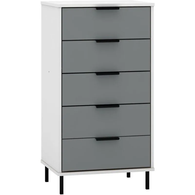 SECONIQUE Madrid 5 Drawer Chest - L38 x W50 x H94 cm - Grey/White Gloss