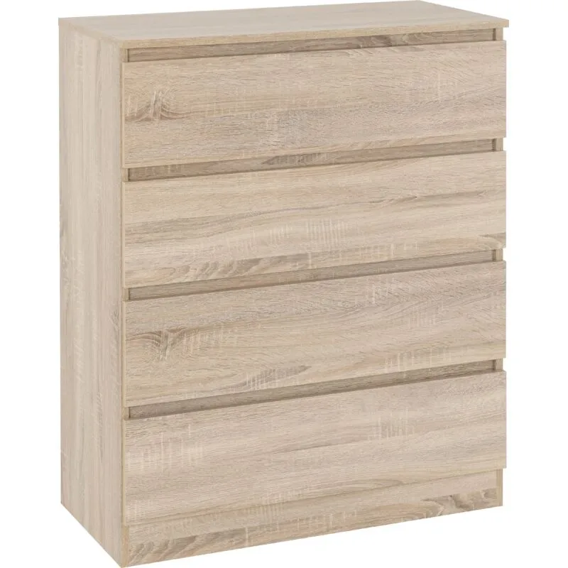 SECONIQUE Malvern 4 Drawer Chest - L40 x W80 x H100 cm - Sonoma Oak Effect