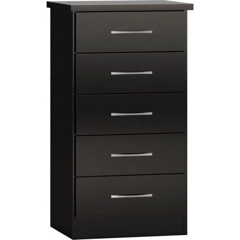 SECONIQUE Nevada 5 Drawer Narrow Chest - L40 x W50 x H93 cm - Black Gloss