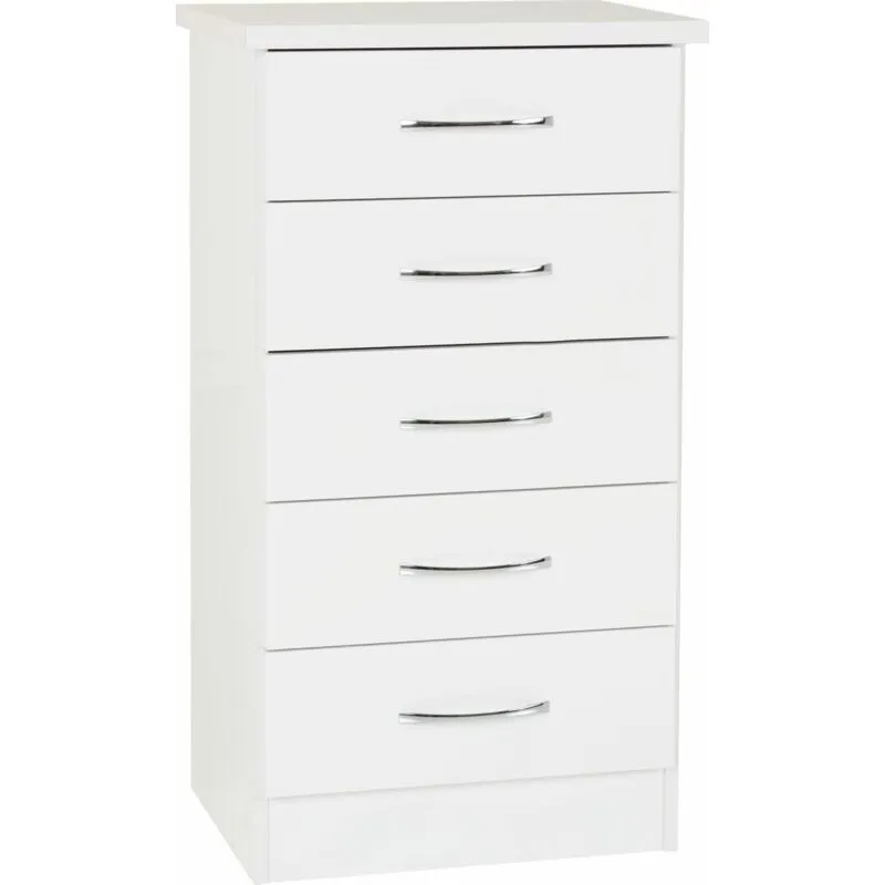 SECONIQUE Nevada 5 Drawer Narrow Chest - L40 x W50 x H93 cm - White Gloss