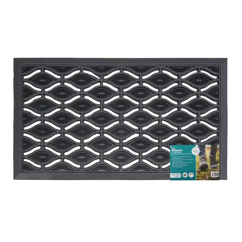JVL Elipses Eyes Rubber Doormat 40x70cm in Black Size: 40 cm x 70 cm Black 40 cm x 70 cm