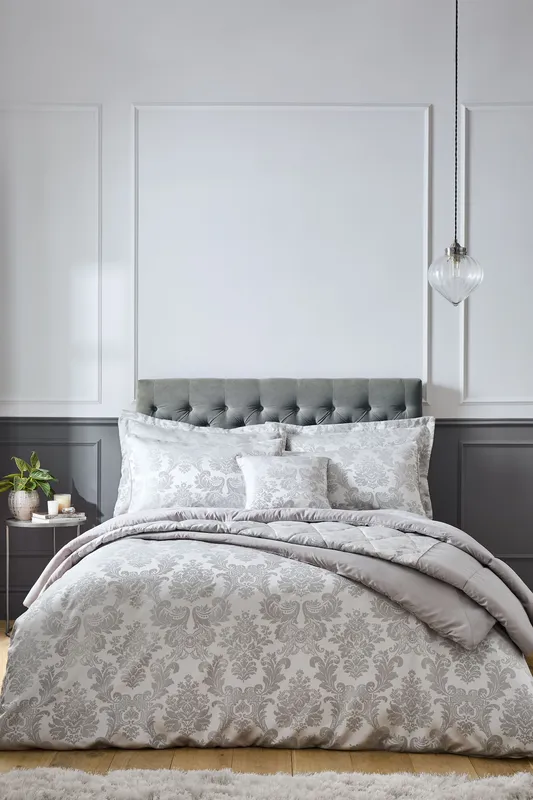 Catherine Lansfield 'Damask Jacquard' Duvet Set in Silver Size: Super King Silver Super King