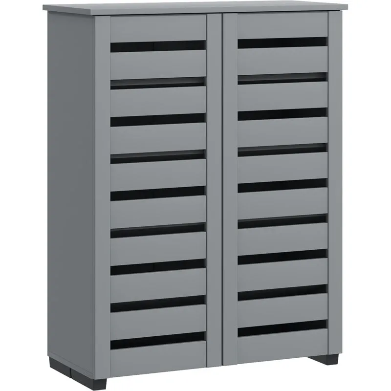 HOMCOM Shoe Storage Cabinet with Slatted Doors for 15 Pairs of Shoes Grey